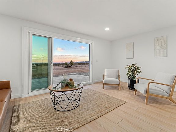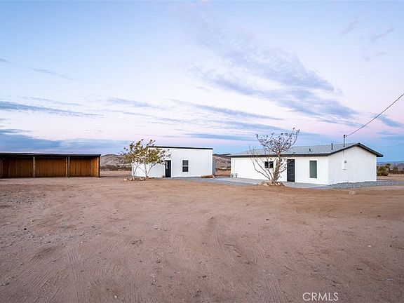 Lovely Landers desert home on large 5 acre lot! Timeless style provides for a great clean slate to make this home your own. With main home and additional guest home, enjoy the convenient additional space. Kitchen has been fully remodeled and includes top of the line stainless steel appliances and custom countertops and stylish open shelving. Brand new vinyl plank flooring has been installed throughout. The light color pallet and large windows in this home make for a pleasant bright and neutral relaxing space. Possibilities are endless on the large 5 acre lot. Install some hammocks for star gazing or a bocce ball court for playing. The custom built car park provides for 3 covered parking spots. Views of Goat Mountain and peace and quiet for miles!