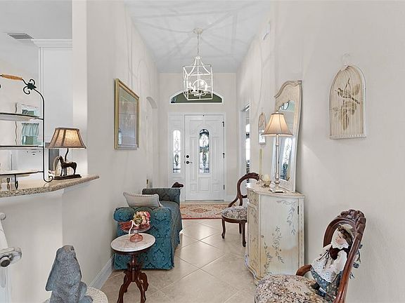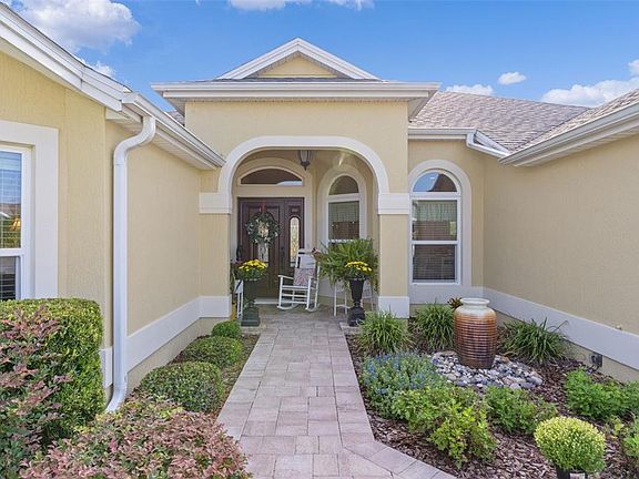 Welcome to this stunning expanded Gardenia model in the highly sought-after Village of Fenney! From the moment you arrive, you’ll be captivated by the beautiful water feature that sets the tone for the elegance and serenity this home offers. Inside, the open layout has been thoughtfully designed without the standard Gardenia dining room columns, creating a seamless, spacious flow throughout the main living areas. The home features 3 bedrooms and 2 bathrooms, each bedroom offering a built-in closet for convenience. The gourmet kitchen is equipped with granite countertops, light contemporary cabinetry, and a charming breakfast nook, while the home also boasts a formal dining room and formal living room—ideal for both everyday living and entertaining. The expansive enclosed, air-conditioned lanai is truly a highlight, overlooking a tranquil pond view. With two oversized sections, it provides the perfect setting for entertaining guests or enjoying peaceful Florida evenings. The luxurious master suite offers a spa-like retreat with split vanities, his & hers walk-in closets, and a roll-in walk-in shower, blending comfort and accessibility. Additional features include: *Vaulted and high ceilings with rounded corners for a refined finish *Ceramic tile throughout living areas and cozy carpet in the bedrooms *2-car garage PLUS golf cart garage with pull-down attic stairs *Whole-house water purifier This block stucco home combines high-end details with thoughtful functionality, all set in the natural beauty and vibrant lifestyle of The Villages.