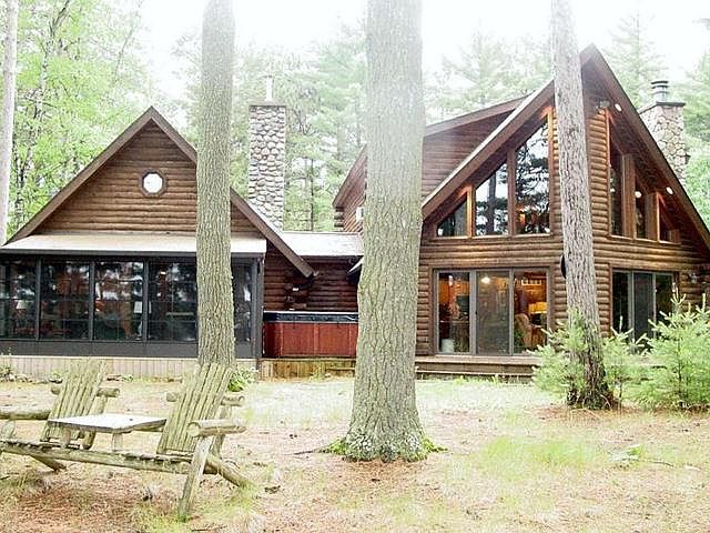 Premier Stick Built Home w/log exterior & interior, on 2 lots with concrete sea wall in the center of the beautiful Manitowish 10 Lake Chain. Custom built in 1987 with addition in 1994. 3 bedrooms, 2 bath. Master suite up w/large full bath, double vanity, walk-in ceramic tile shower, whirlpool tub & large walk-in closet. A bonus room completes this level. Great room #1 has a wood burning fieldstone fireplace and a loft den overlooks this great room. A bedroom, full bath, laundry/utility room w/commode and beautiful, lakeside 3 season room are off great room #1. The open, kitchen/dining/great room #2 has a fieldstone fireplace w/pellet stove insert & sliding doors to open lakeside deck - center deck has a large hot tub. Custom kitchen w/large pantry & Silestone counter tops. Off of the back hall is the 2nd main floor BR & mud room. 2 det. garages-1 w/heated workshop (both are drive thru), small storage shed & pump house complete this wonderful property! PRIVATE SETTING! A Must See!