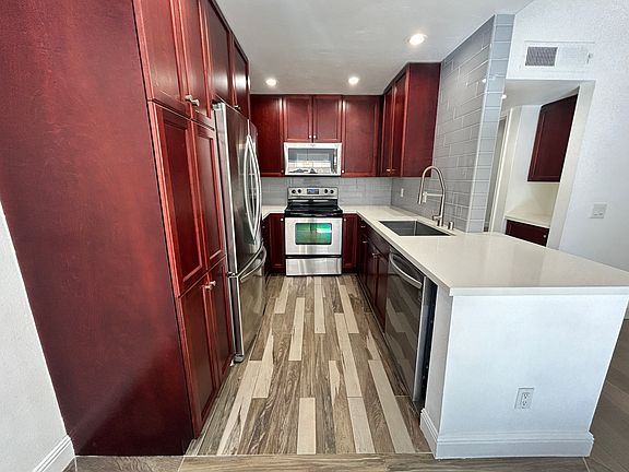 Bright & Airy Top-Floor Condo in Central Park La Mesa In-Unit Laundry & Resort-Style Amenities! Welcome to your new home in the highly desirable Central Park La Mesa community! This spacious, top-floor 1bd/1ba corner unit boasts vaulted ceilings, creating a private and tranquil living space. Step inside to find tasteful upgrades throughout, including hardwood flooring, recessed lighting, and a beautifully updated kitchen with quartz countertops, stylish backsplash, and high-end stainless steel appliances featuring an LG refrigerator and dishwasher. A dedicated dining area with a built-in desk and storage drawers makes working from home both convenient and comfortable. The updated bathroom is a true retreat, offering a floating vanity, deep soaking tub, and a spacious vanity mirror with built-in storage. Enjoy year-round comfort with central A/C and heating. Relax and unwind on your private balcony, the perfect spot for your morning coffee or evening wind-down. Plus, an additional storage closet on the balcony provides extra space for your belongings. Enjoy one dedicated covered carport parking spot, as well as plenty of additional parking available for guests. Resort-Style Living at Central Park La Mesa: Heated pool & hot tub for relaxation BBQ grills for outdoor gatherings Fitness center to stay active Private access to Northmont Park right next door Nightly security patrols for peace of mind Dedicated covered carport parking spot Prime Location Unbeatable Convenience: Steps from Amaya Drive Trolley Station for easy commuting Quick access to I-8 & CA-125 freeways Minutes from Costco, Trader Joe's, Target, and Frazier Farms Close to Sharp Grossmont & Kaiser Permanente Hospitals Don't miss out on this bright, modern, and conveniently located condo apply today and make it your home! No pets allowed. No smoking allowed. Applicants must show income of at least 2x the monthly rent. Credit and background check is required with lease application. 1 year lease. Tenant is responsible for SDGE. Owner pays for trash and water.
