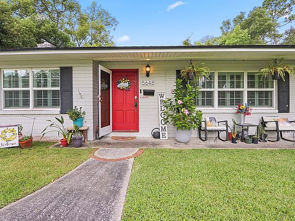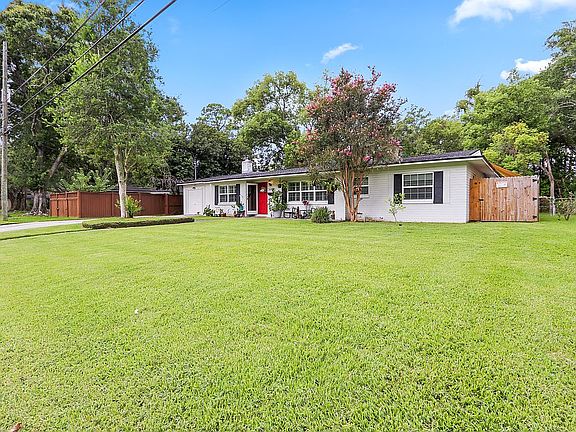Great neighborhood minutes away from Timuquana Country Club,Florida Yacht Club and NAS. Relax on your covered patio overlooking the saltwater pool that is solar heated. Lovely living room and dining room with plantation shutters and beautiful hardwood floors, family room with handsome stone fireplace, updated kitchen with stainless steel appliances,Corian countertops with integrated sink, eat-in kitchen, built-in china cabinet and desk nook. Master bedroom has french doors leading into the pool area. Second bedroom has built-in wall unit with window seating and storage. Detached storage shed with electricity, irrigation system in front yard and security system.Call and schedule for your appointment today!