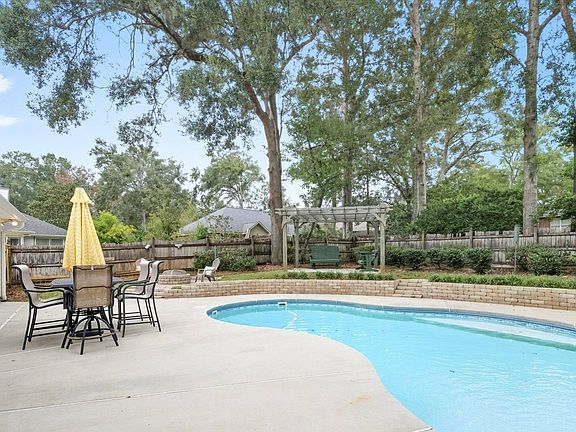 Well-maintained by the original owners, this inviting 3 bedroom, 2 bath split floor plan home combines functional living, exceptional outdoor amenities, and desirable upgrades: gas fireplace, whole house soft water system, irrigation system, and Windshield hurricane protection system. The primary suite features a walk-in closet and a private bath with a spacious walk-in shower room, creating a relaxing retreat, while the backyard is ideal for both relaxation and entertainment; complete with a pergola overlooking the salt water pool, hot tub, fire pit and a mature satsuma tree--an ideal spot for gatherings or quiet evenings. Located in a quiet neighborhood with sidewalk-lined streets, this property provides a family-friendly setting where children can bike to school.