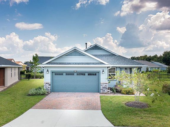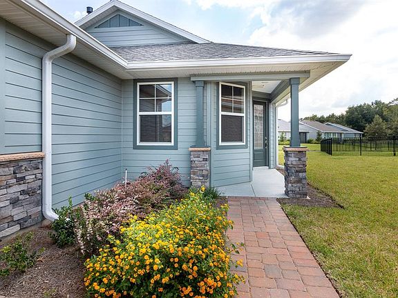 This really lovely 2 bedroom/2 bath home is located on a great cul-de-sac in the gated, golf resort community of Trilogy at Ocala Preserve. Open floor plan with third space that can be used as an office/den, upgraded finishes and counter-tops, expanded master suite and large screened in lanai are just some of the features this home has to offer. One step inside and you'll want to call it home! The Oak House is Trilogy's clubhouse. It includes the Salted Brick restaurant, the Alvea Spa and gym, and a beautiful veranda that overlooks a lake all while enjoying the over sized beautiful pool and hot tub. See this home today and envision happiness and enjoyment.