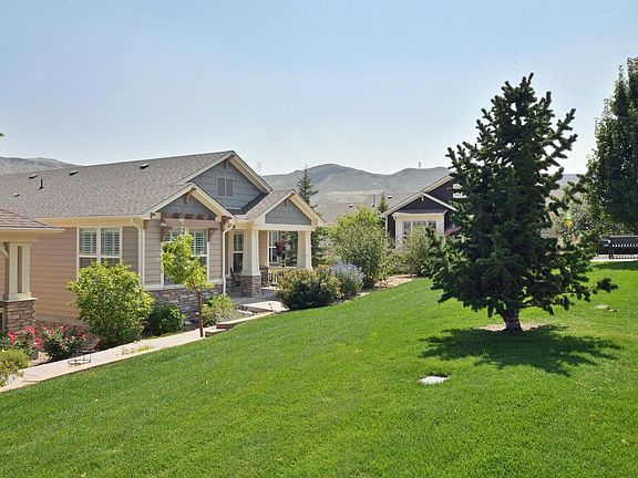 Beautiful, well maintained, 2-bed, 2-bath patio home in 55+ community at the base of the Golden foothills! As you enter, end unit features a lovely front porch patio to enjoy under cover of a protective sun shade. Inside, this lovely home boasts a light and bright open floor plan. The Kitchen looks out to considerable Great Room and features gorgeous cherry soft-close cabinets, granite counters, and stainless steel appliances, including a double oven and gas cooktop. Sunny and expansive Master Bedroom boasts an oversize Master Bath with slate tile and glass-enclosed shower. Mudroom off garage and back patio entrances offers a nice convenience and additional storage. Stunning hardwood floors in main living areas and newer carpet in bedrooms. Plantation shutters throughout. Plus, new exterior paint, new refrigerator and new concrete back patio. This is an easy move in and live in!