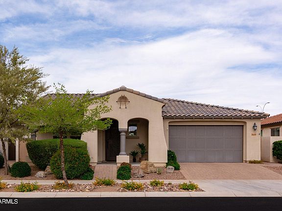 Fully loaded Eastmark vacation home! Entertain & impress in your resort-style backyard w/ PebbleTec ''spool'' (heated pool w/ water jets spanning 1/2 perimeter seating), spacious Baja shelf, rock waterfall, & gas fire bowls. Stand-alone hot tub, outdoor kitchen, extended covered patio, fans, & cool-touch travertine-look pavers. Low-maintenance landscaping w/ citrus trees & flowering vines. 2 bedroom suites, office, flex-room w/ Murphy bed, & 2.5 car epoxied, garage. Modern kitchen, quartz countertops, custom cabinets, tankless water heater, 7:1 surround sound + outdoor speakers, accent walls, & plantation shutters throughout. Community clubhouse offers tennis, Pickleball, pool, restaurant, planned events, & more. Quick access to 60/202, Gateway airport, shopping/restaurants/entertainment.