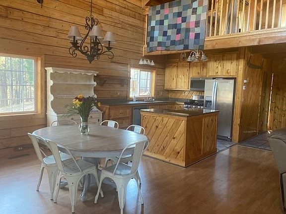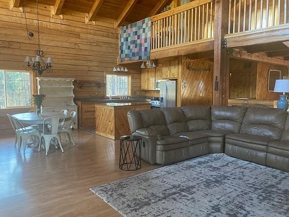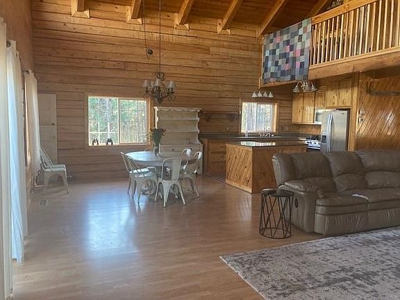 Custom Log Home on 19.5 treed acres with a massive 40x60 Shop. This beautiful 3400 sq ft home has 3 beds, 2.5 baths, large foyer, open concept living, huge living room with massive windows, a large family room in the basement along with 2 big bedrooms. Primary bedroom is located in the open loft with views out the peak windows. The kitchen has granite countertops, stainless steel refrigerator and a gas range. The laundry room is conveniently located on the first floor next to a full bathroom. Gas forced air furnace with new AC and a wood stove for winter nights. The shop is not only massive it also has laundry hookups, small shower, H20 tank, RV height door, heater and a wood stove. There is a nice wood storage shed and 2 additional storage sheds, a play set and an above ground swimming pool with a deck. It’s hard to find a custom log home on 19.5 acres, fully paved to the driveway, shop and privacy all located just minutes to a grocery store, restaurants and schools!