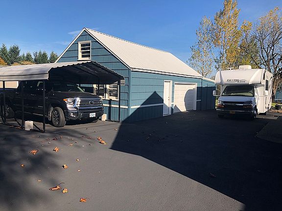 64x48 foot cement floor with paint booth shop. Fireplace and lots of fruit trees. Fenced and 2 driveways. 2 Story 3 bedroom 2 bath 2200 sq ft with window mud room 10x5 and walk in 9x6.5pantry. Brand new stainless kitchen appliances refrigerator, stove, dishwasher. Master bedroom and master bathroom downstairs. 2 large bedrooms and study area upstairs 2 story detached 3 car garage with new garage door. 20x12 new Carport All new energy efficient windows and doors in house.