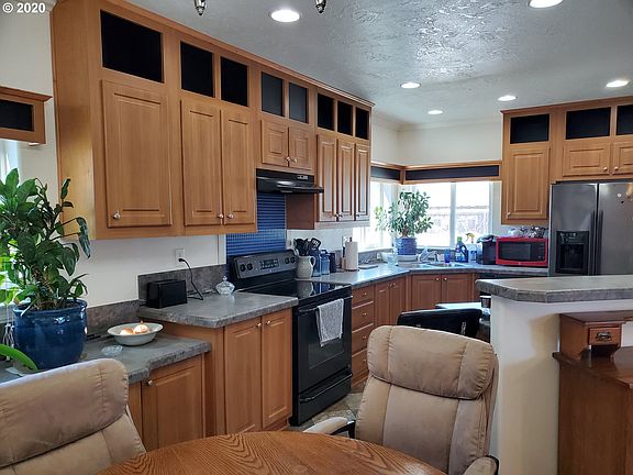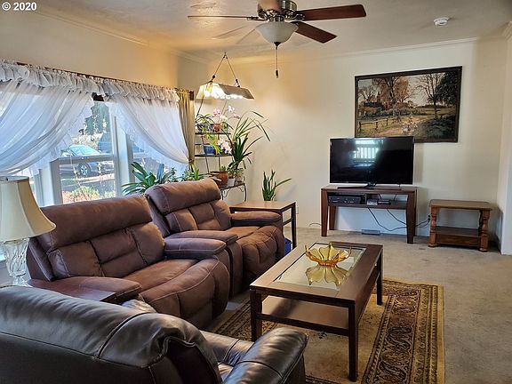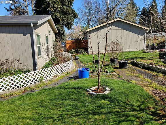 Gardeners delight- apple, cherry, apricot, pear, fig trees, grapes, strawberries, blueberries, raspberries, blackberries, loganberries, special trees - cedar. Home has covered front porch. 3rd bedroom could be a den.
