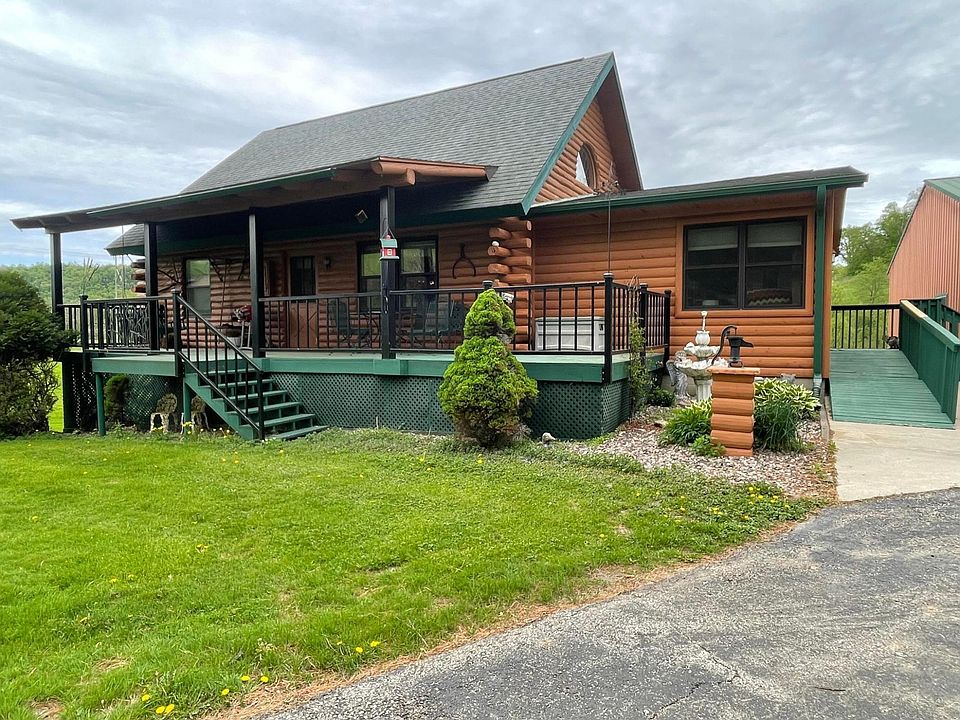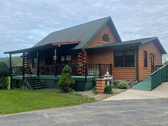 One of a kind log home located in the country. Grand vaulted ceilings with impressive log beams. 3 bedrooms, 2 baths and a detached 3+ car garage with a huge workshop. Open concept kitchen, dining and living room. Cozy sun room over looks the backyard. Lower level has another bathroom, large family room and walks out to private yard. A must see loft like no other. Relax of the cozy covered front deck. A true gem!