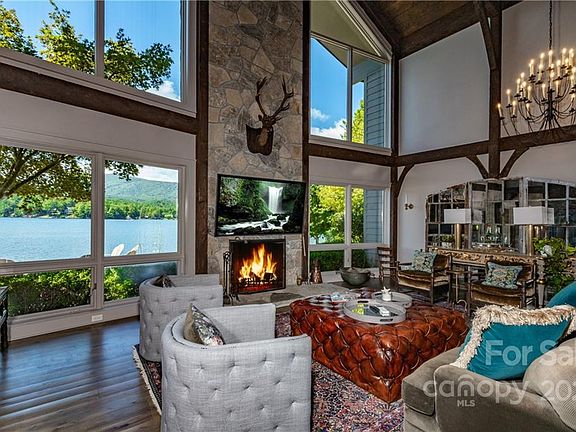 Immaculate fully renovated, move-in ready 3 BR, 3 BA lakefront home with one of the most spectacular views in Lake Toxaway. This custom home features 3 master suites, 2 half baths, large great room with stone fireplace and an absolutely magnificent view of the lake. Well-appointed kitchen, elegant butler's pantry and laundry room, extensive outdoor entertaining space including large two stall boat house with rooftop outdoor living room, firepit, Brazilian hardwood dock, and gorgeous view of Lake Toxaway and Toxaway Mountain. This home also features a large main level bonus room/study as well as a garage and fenced yard with extensive landscaping.