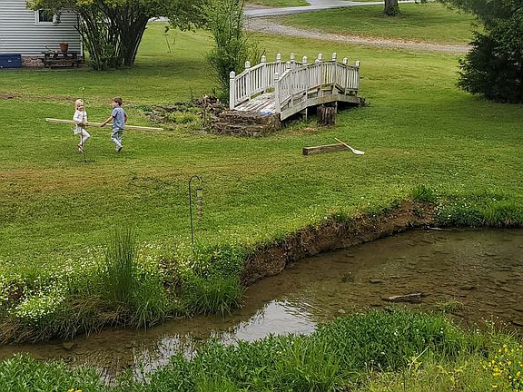 Current family has to leave their dream home due to job relocation.. Home is very spacious, over 2,000 sqft. There are 4 bdrms, 2-full bath, large laundry room, large living room with gas fireplace with a barnwood mantle. A spacious kitchen/dining area with window that looks out at backyard. Large covered front & back porches. Owner finished remodeling 3 of 4 bdrm's. A long concrete driveway leads to a covered carport. Home sits on over 1 acre that backs up to a gorgeous mature treeline that gives plenty of privacy. A flowing spring fed creek cuts across the backyard. A large fire pit overlooks the creek. A 40'x20' workshop w/ electricity is at back of property. Home comes with fridge, new microwave new dishwasher and stove, . Newly updated GFCI throughout home. Updated outside sockets w/covers. New 3-way switch at staircase to 2nd story. New AC wall unit in upstairs bdrm. City street light provides safety at night to front yard as does a flood light off back porch. 5 mins to shopping