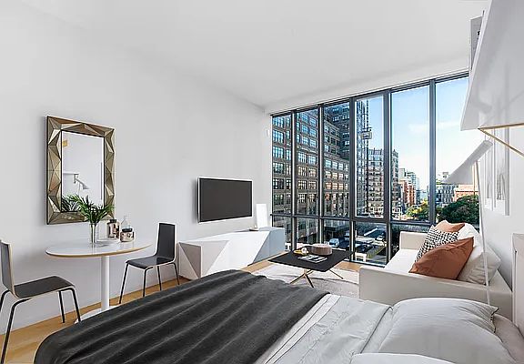 This perfectly laid out studio / 1-bathroom residence features open western views, oversized windows, 10' ceilings, and pristine 6-inch white oak plank floors throughout.