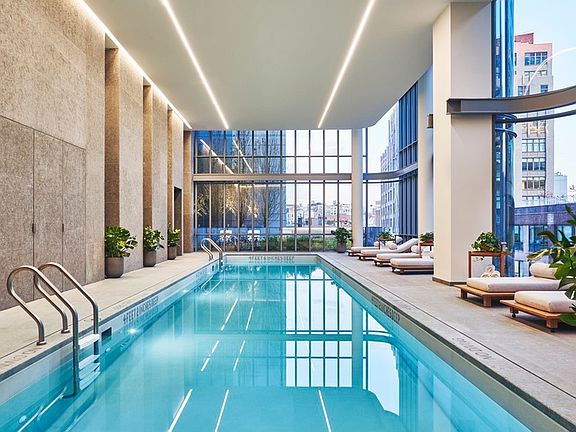 This apartment is located in one of SoHo's most sought after buildings, 565 Broome Soho. The building is designed by award winning architect, Renzo Piano with famous works such as The Whitney Museum of American Art in New York City in addition to designing many of the world's most recognized and celebrated properties. 565 Broome Soho is Renzo Piano's first residential building in New York City. This highly sought location in Soho mixes the best of restaurants, high end luxury retailers and neighborhood services that are part of day to day life such as Hudson River Park, outdoor playgrounds, biking and jogging paths as well as close proximity to the 1, C, and E trains. The building standing 290 feet tall makes it the tallest residential building in Soho. A unique feature for the building and apartments which makes it stand out are the soft corners in the design of 565 Broome Soho. The corners are rounded using non-segmented glass which can give the resident the feeling of floating over Manhattan. Some of the amenities include a marvelous lobby designed by Renzo Piano with a 24-hour concierge and an attended lobby with double height glass that allows for much natural light to come in. Other amenities include a private gated driveway and a porte cochere that is beautifully planted and landscaped, a 55-foot indoor swimming pool with men's and women's sauna and steam. The building also features a 1200 SF landscaped sunning terrace, a fitness center, yoga/stretching room and a children's playroom, a beautiful conservatory/curated library, a live wall with growth lighting as well as ambient lighting plus a social room, media room and a caterer's kitchen for accommodating any event.