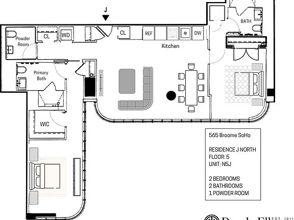 Discover unparalleled elegance in this 1,382 sq. ft. 2-bedroom, 2.5-bathroom residence at 565 Broome Soho, masterfully designed by world-renowned architect Renzo Piano.
