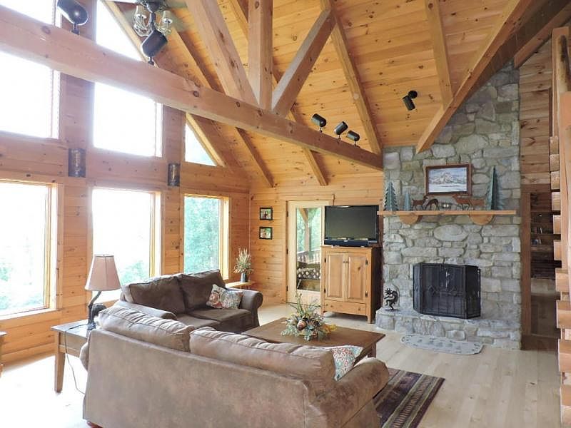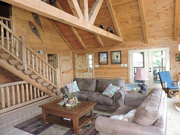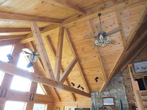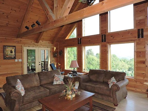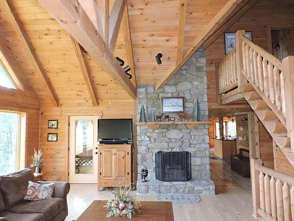 Amazing log home with priceless views from every window. Main home features first flr master, tile shower, whirlpool tub, 2 story living rm w/2 sided wood FP, Great rm, large open kitchen w/Quartz counters, stainless steel appl, laundry rm/mud rm, walk-in pantry, upper loft area could be a Den and BR w/full bath, lower level has 2 BR, full bath, Family Rm w/gas FP & wet bar. Every room on the first floor opens to the full wrap around deck.Full In-Law Quarters features beautiful kitchen, 2 story Living Rm w/wood FP, sunroom, 1st Flr BR, tile shower, loft or 2nd BR, and private patio. 2 high efficiency geothermal heat pumps. Two 200 Amp electric services. Tree farm on the property could add additional income. Screened room on upper deck, lower level deck for lots of shade. 3 car detached garage w/electric. This home has so many custom features you must come see it.