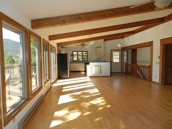 Wonderful views of Longs Peak from your living room & kitchen through the golden aspen trees. Large vaulted ceiling in the living room/kitchen with wood floors for your open-concept floor plan. One-level-living with master bedroom, walk-in closets, laundry, & walkout deck overlooking the mountains on the main level. Garage is oversized with many cabinets. Master bath needs to be finished. Very sizable home (2,725 sq. ft.) for the price.