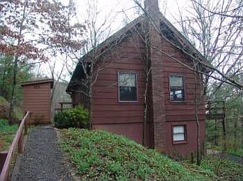 Foreclosure, priced to move. Loft/office upstairs could be used as 3rd bedroom and lower level has kitchenette area w/ outside entrance in case you wanted to rent that part out. Great Cabin in the woods and is exactly what folks are looking for when they come to the mountains, affordable rustic getaway! Plenty of decks/porches, powered storage builing, small yard area easy to maintain and more. Wooded privacy and winter view.