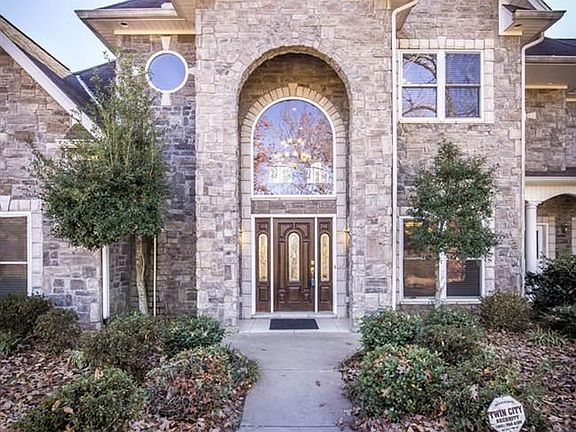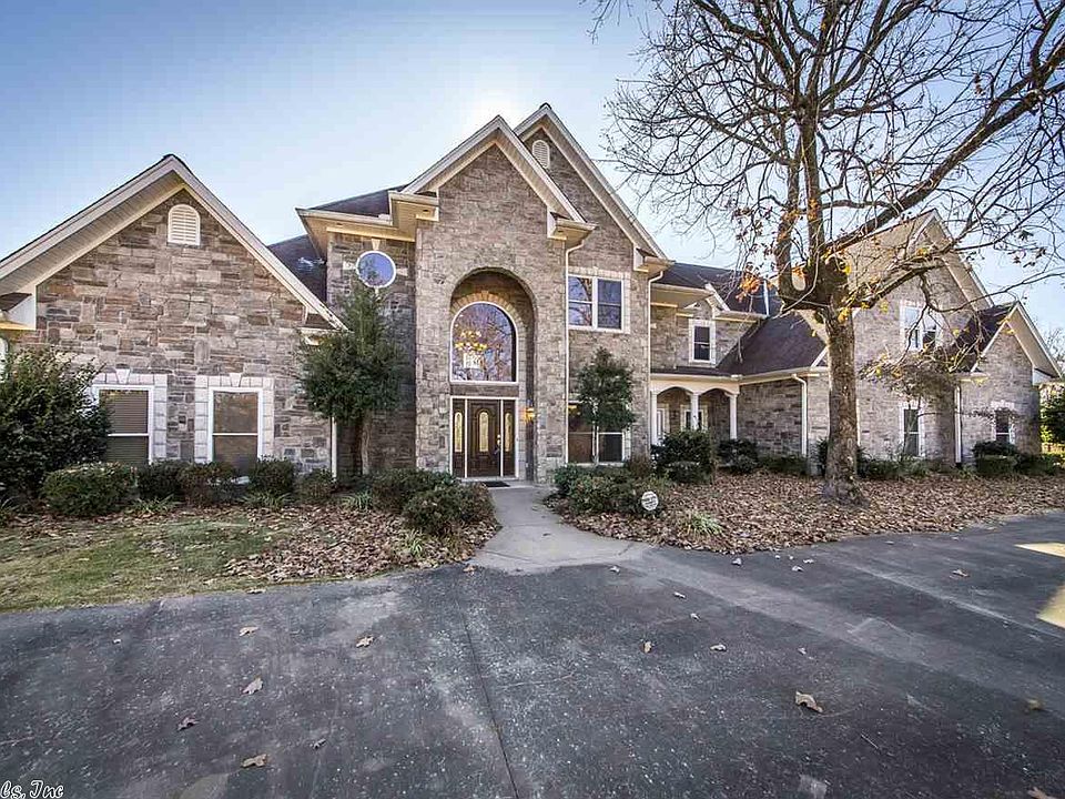 View on top of the hill! Magnificent home with 2 living areas, formal dining, 4 bedrooms, 5 1/2 baths, theatre room,kitchen with granite countertops and tons of cabinets, dining room with bay window, fireplace in one living room, circle driveway, brick and rock exterior, gorgeous hardwood flooring, built in bookcases, absolutely to die for master bedroom with patio and master bath, with packing station closets, huge playroom, extensive trim, talls ceilings, recessed lighting,3 car side garage, has it all!