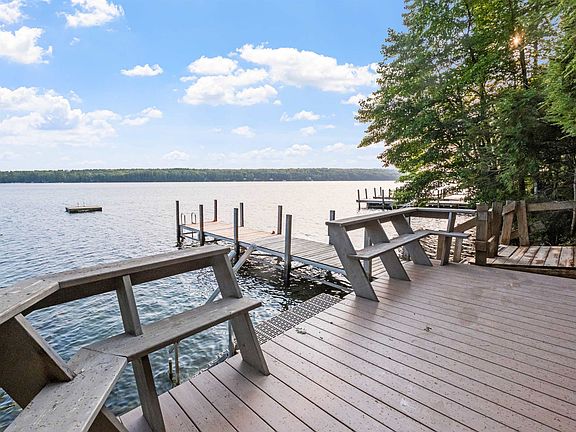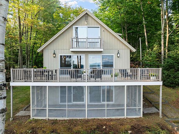 Nestled in the heart of the picturesque Winter Harbor, this private Lake Winnipesaukee home offers a breathtaking escape with mesmerizing panoramic mountain and lake views that stretch as far as the eye can see. Step inside to discover a warm and inviting living room, where a stunning field-stone fireplace stands as the centerpiece, inviting cozy gatherings and tranquil evenings by the fire. From the living room, open the new sliding glass doors to the large 26' x 10' trex deck that extends your living space outdoors. The main level also features a first floor bedroom, guest bathroom and laundry/storage room. As you make your way upstairs find guest bedroom, full guest bathroom, and second bedroom with a balcony overlooking the lake and mountains in the distance. The large basement is partially finished and features a brick hearth with wood burning stove, living area, and double sliders that open up to a covered screened in porch with brick paver patio. Each level of the home is equipped with convenient mini-splits that allow for personalized heating and cooling, ensuring comfort no matter the season. Unwind after a long day in the various nooks of this exceptional property. Additionally there is an oversized two car garage with full walk up storage loft above. Come enjoy all the comforts and conveniences of year round Lake Winnipesaukee living! Brand new 3 bedroom State Approved Septic System installed! Open House Saturday 11/30 from 11-1!