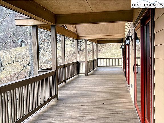 The beautiful gated community of Fox Meadow Farms is located in Banner Elk, NC and is known for outstanding views of Grandfather Mountain and the surrounding area, rolling pasture land and a peaceful and secluded environment. Being offered for the first time, this almost level entry custom home has 2 bedrooms, 2.5 baths, hardwood floors, vaulted ceilings, quartz countertops in the kitchen, a wood burning fireplace with a live edge mantle and so much more. The open floor plan is enhanced with a wall of sliding glass doors and windows that take in the SW views. The Kitchen has an enormous amount of cabinetry for all of your storage needs. Throughout the house you will find stained glass accents that will stay with the home. The basement is huge, dry, and has a tall ceiling so it can be used for storage or easily finished for additional living area. The lower level can be accessed from inside the home or from the outside through a double door entry. Just imagine sitting on the covered wrap around porch and taking in the stunning layered views of the mountains and wildlife. The home is also equipped with a generator and has a small spring that flows in a valley below the house.