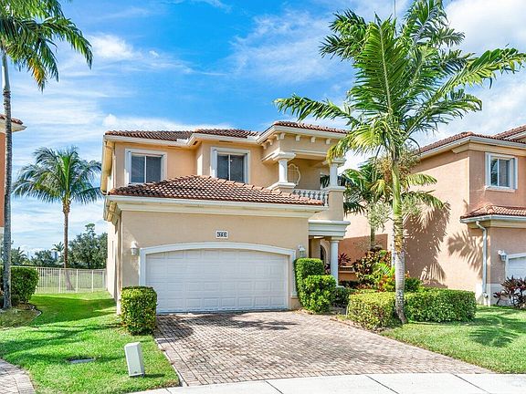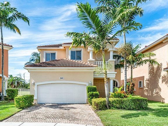 Welcome to Terracina! A beautiful gated family friendly community in the heart of it all! This light bright 4 bedroom, 2.5 bath, 2 CG gem is a true masterpiece that exudes Mediterranean charm! You are greeted with high ceilings and beautiful 18'' tile set on the diamond! The eat in kitchen is a culinary haven with breakfast nook, granite countertops, SS appliances, pantry, extended center island, 42'' cabinets and TONS of storage! Formal Living and Formal Dining are perfect for family gatherings. Additional first floor features; Foyer, family room, powder room, laundry room w/ sink, under stair storage. The master suite is a true sanctuary with coffered ceilings, walk in closets his and her vanities, walk in shower and soaking tub. Three additional bedrooms with large closets, full bath, and linen closet complete the second floor. Full Accordion Shutter protection, A/C 2015, recessed lighting, exterior freshly painted, seamless gutters. Fully FENCED private large backyard with a water view, perfect place to relax and entertain. Terracina offers 24 hours security, pool, tennis, gym, fitness center, basketball and playground. Centrally located with easy access to the Turnpike and I95. Credit score of less than 650 = denial. If the purchaser has a credit score between 650-700 the HOA may approve the purchase subject to pay a rolling one (1) year's assessment.