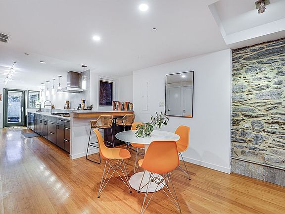 Charming 2-bedroom, 1.5-bath home in the heart of downtown Jersey City! This gem features a private yard, ideal for relaxing or entertaining. Located between Van Vorst Park and Hamilton Park, the home boasts an expansive, upgraded kitchen with stainless steel appliances, new washer and dryer and a breakfast bar, along with room for a dining table. The primary bedroom hosts an upgraded bath with standing shower, soaking tub and walk-in closet. Step outside to the exquisitely curated private yard with built-in lighting, exposed granite wall, and custom built-in fountain. Flexible second bedroom opens up to the living area and can be utilized as a flexible space. Just a short walk to the Grove Street PATH, offering easy access to NYC.
