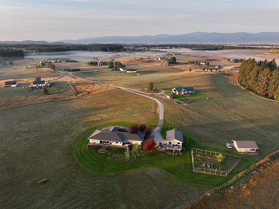 REVENUE PRODUCING, VIEWS, QUIET PROPERTY RETREAT shy of 10acres overlooking serene mountain lake. Short Term Allowed. Three warm and bright structures. Main House: 2 bed, 2 bath, 2 car garage – 2330sf. Refined finishes having 9’ to 10’ ceilings, open concept for ultimate entertainment. Apartment: 1 king bedroom, 1 bath - 912 sf over 3 car garage. Vaulted, large island, walk-in closet with laundry, decks looking towards lake and mountain views. Studio: Stunningly detailed bedroom studio with 1 bath and express kitchenette, 500sf, private sunset deck overlooking lake views. Nightly rent or have MIL Quarters on your property. Impeccably cared for home with breathtaking sights of the Jewel Basin and Mount Aeneas. A relaxing private refuge where you can enjoy the ease of beautifully crafted interiors with deck space over 1900sf showcasing 360deg unobstructed views. This is your chance at a slice of Montana which truly replenishes and refuels your soul. Golf pitch to 100 yards from the back deck. Waterproof flooring throughout all structures, LVP and Cork. Newer carpet in Main House. Relief patterned paintable wallpaper headboard walls. Underground sprinklers, 10 zones including Garden space with 8ft fence surround. Deer-resistant landscaping. *See additional Features Sheet in Docs.**