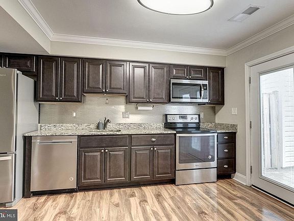 Beautiful townhome located in the Willow Bend community of Frederick Height boasting gleaming floors, light filled interiors, crown molding throughout the main level, and neutral color palette! Spacious living room perfect for entertaining family and friends; Renovated eat-in kitchen equipped with Granite countertops, sleek stainless steel appliances, ample cabinetry, decorative backsplash, and a casual dining area with access to the fully fenced backyard; Powder room and laundry ; pantry complete the main level; Primary bedroom, two bedrooms, and full bath, conclude the upper level; Exterior Features: Landscaped grounds, rear fence, patio, secure storage, and private backyard Community Amenities: Enjoy being close in proximity to all that Frederick has to offer. Abundant shopping, dining, walking ; biking trails, and entertainment options are just minutes away. Outdoor recreation awaits you at Carroll Creek Park, Willowdale Park, Maryland National Golf Club, and much more. Major area commuter routes include MD-15, MD-40, I-70, and I-270.