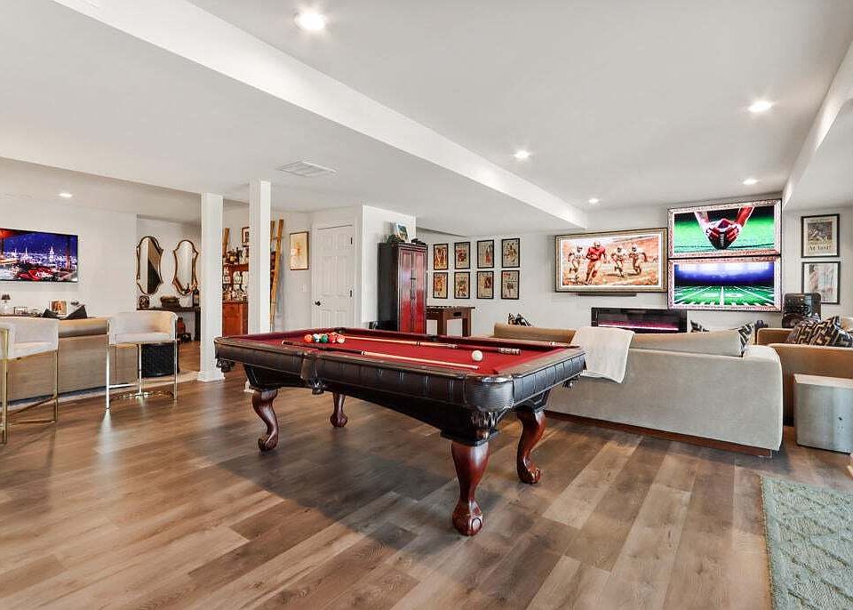 Game roomFinished walk-out lower levelRegulation-size pickleball courtFamily roomHeated bathroom floorOpen kitchen great roomExpanded deck