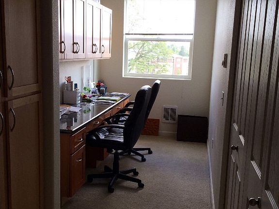 Beautiful 2 bed, 2 bath + office one level condo, end unit, top floor with vaulted ceilings throughout. Gourmet kitchen, all S/S appliances and granite slab counters. Extensive kitchen cabinet storage. All appliances, including fridge and washer/dryer are included. Built-in office cabinets with granite work surface. Fireplace, AC, master bedroom with walk-in custom closet. Private balcony off living room overlooks trees and trails.