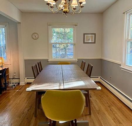 Welcome to this bright and spacious 4 bedroom 2.5 bath home with nature in your backyard. 1st floor features LR with built-ins, DR, Eat-in Kitchen w/SS appliances, family room with wood burning fireplace, sliders lead out to a new deck. 2 bedrooms and a updated full bath with heated floor. 2nd floor features a spacious master bedroom, 2nd br, an office and an updated bath with heating flooring as well. 2 Car Attached Garage with outlet for electric cars. Partially finished basement. 2 zone Central air. Minutes to Shops, Schools, Restaurants, NJ Transit and GSP. Completed application, employment/income verification, credit report, 1.5 month's security & rental insurance required. Pets may be considered Non-smoking environment.