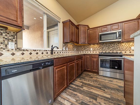 Welcome to this stunning well cared for home, built in 2018 and thoughtfully designed for modern living. This 3-bedroom, 2-bathroom residence features rare 3-car garage accessible from the alley, offering both convenience and functionality. As you step inside, you're greeted by an inviting open concept living space, perfect for gathering with family and friends. The sleek kitchen is a chef's dream, equipped with stainless steel appliances and ample granite counter space for preparing meals. The xeriscape yard with artificial grass not only enhances curb appeal making this home both eco-friendly and low-maintenance for easy living. Centrally located, you'll enjoy easy access to shopping, dining, and entertainment options. This home has been pre-inspected and comes with a Blue Ribbon home warranty for added peace of mind. Don't miss the opportunity to make this gem your own!
