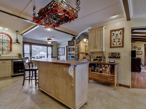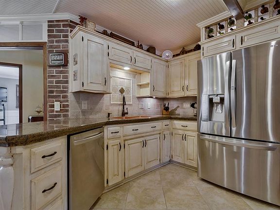 Fantastic waterfront property with mature trees and peaceful surroundings. Located in Hidden Lakes Addition. 2,600 square foot ranch situated on .72 acres. 4 bedroom, 2.5 baths, wood floors, wood burning fireplace, beamed ceilings in family room, Formal and informal dinning, formal living space and main floor family room. Large foyer, large kitchen island, butcher block and granite countertops, copper and stainless sinks, gas stove top and more. Jack and Jill bathroom, beautiful tile finishes and reclaimed wood. Large master with nice master bath, walk in closet and access to outdoor patio. Inground pool, patio and entertainment area with fire pit. Iron fencing. Two car oversized side load garage and circle drive.
