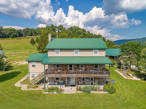 Located in beautiful Giles County, VA is where you'll find this gorgeous +/-53 acre farm with not one but two homes. The main farm house is a 6 BR 4 BA and has an office that could easily make a 7th BR and plenty of storage space. Downstairs offers a separate living quarters or in-law suite with its own bedroom, living area, and kitchen. The guest house is a 2 BR 1 BA with an unfinished basement garage. The guest house offers an offie space that could easily be used as a 3rd BR. The views from are absolutely amazing! Other features for this property include creek frontage on Walkers Creek, a windmill, wood shed, huge brand new barn, detached 3 car garage, property is mostly fenced, 5 burner gas cooktop, wood burning cookstove, metal roofing, multiple raised beds, grape vine and different fruit trees, and more. Numerous possibilities such as bed and breakfast, resort center, multi family dwelling, or home and separate building for business.