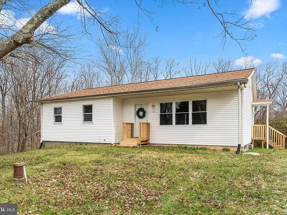 TOTALLY RENOVATED RANCH HOME ON 1.76 ACRES. 3 BEDROOM, 1.5 BATHS. NEW ROOF,SIDING, HVAC, WATER HEATER, WINDOWS, BATHROOMS, DRYWALL, PAINT, DOORS, KITCHEN CABINETS, APPLIANCES (STOVE TO BE INSTALLED) AND DISHWASHER. LARGE LAUNDRY ROOM AND HALF BATH COMBINED. NEW HARDWOOD FLOORS THRU HOME. FULL UNFINISHED BASEMENT AND LARGE STORAGE GARAGE. WELL/SEPTIC. COUNTRY SETTING!!!