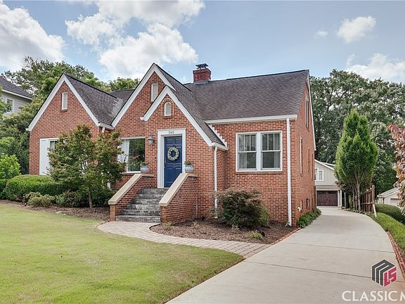 This beautiful home perfectly blends the historic charm with tasteful updates for today's modern lifestyle and style aesthetics. The historic cottage curb appeal graces one of Athens's finest streets - wide and tree lined with ease and proximity to restaurants, nightlife, shopping, UGA sporting events, and a strong sense of community. Inside are arched doorways, beautiful hardwood floors, formal rooms, and original interior detailings, but the house was meticulously updated in 2017 with an open concept kitchen and living floor plan across the rear of the home. The gourmet kitchen has custom cabinetry, quartz countertops, backsplash, built-in breakfast nook, and high line stainless appliances with a dry bar / butler's pantry connecting a lovely mud / laundry room / drop zone. The kitchen gives way to the living room, which opens to an expansive back porch with gas log fireplace that overlooks the private backyard. Also on the main level are two full bedrooms and two full bathrooms as well as a quaint side sunroom with private courtyard perfect for morning coffee. Upstairs is a newly updated owner's suite as well as three additional bedrooms and two additional bathrooms. There is a great partially finished basement perfect for multi-use and additional storage with exterior drainage system to ensure it stays dry. The garage was added in 2015 complete with an upstairs guest suite / home office / flex space with builtins and a full bathroom. The back yard is large, private and perfectly landscaped. This home is conveniently located just outside of the historic district, which is nice for making any exterior modifications. See more at 565CloverhurstAvenue.com !