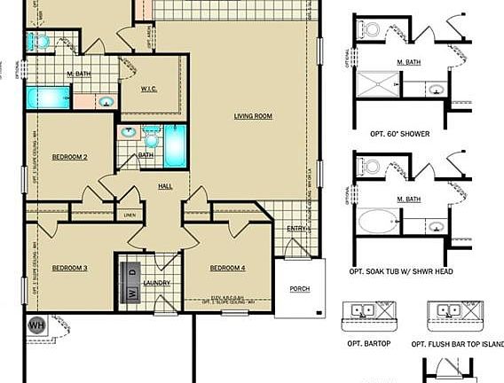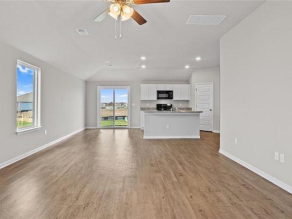 The charming RC Bridgeport plan is rich with curb appeal with its welcoming covered front porch and front yard landscaping This one-story ranch-style home (slab on grade - no basement) features 4 bedrooms and 2 bathrooms. Enjoy the large open-concept living room, energy-efficient equipped kitchen with stainless-steel appliances, ample counterspace, and a large corner pantry. The laundry room, conveniently located just off the 2-car garage, is perfect for any sized family.