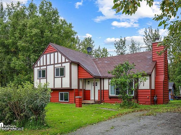 Charming and renovated tri-level home in Wasilla city limits! This home offers three bedrooms and one and three quarter bathrooms and the house is situated on over an acre. This home was remodeled from studs out and has updated floors, windows, doors, walls, trim, bathrooms and custom kitchen cabinets and countertops . New septic and hot water heater within the last few years.Great privacy in the back yard and room to explore this corner lot with mature trees. Close to town in a nice neighborhood. Come check it out today!
