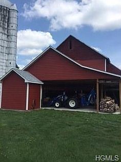 Custom craftsman farmhouse in pastoral country setting! This spacious 3200 sq. ft. 4 Bedroom home has so much to offer with unlimited possibilities & room to expand. Situated on 5 acres with an expansive barn and silo too!, 2 car garage, great outdoor living with wrap around porch, stone patio, barbeque pit & vast open space with pond. This home has been totally renovated,carefully & lovingly preserved, with a mix of rustic charm & modern finishes - quality rare to find - Mahogany siding,gourmet Kitchen with copper sink,commercial 6 burner double oven gas stove, subzero refrigerator, hand crafted cherry cabinets, hickory floors & dual stone fireplaces between formal dining & Kitchen, sun drenched den/office with custom spiral staircase, Master Suite with soaring ceilings, & master bath with double sinks,claw foot tub, shower with glass enclosure & huge walk in closet with built ins. Lower level offers partially finished Family Rm. & Den. 3rd Bath to be installed. An extraordinary home!