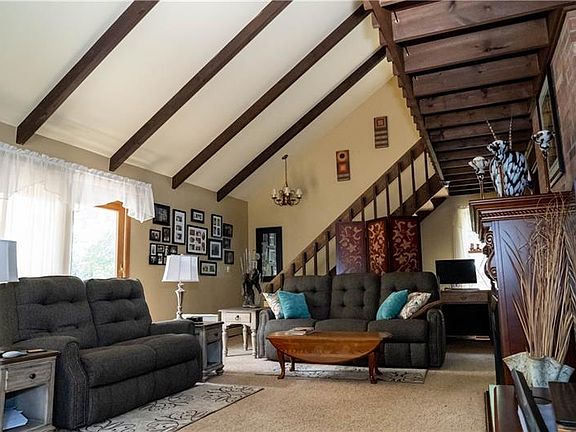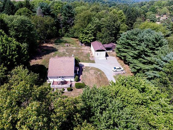 Bask in a surround of over 1 acre of perfect privacy! As you glance around at the countryside views from the composite deck, you will easily forget that you are within a 20-minute drive of Cranberry and every lifestyle convenience under the sun. A bank of glass doors provides a seamless integration between outdoor and indoor areas and allows perfect sunlight to enter and flow freely in the open, connected interior. A soaring ceiling with exposed beams and a charming brick wall add a country feel to the living area and are the perfect backdrop for the free-standing fireplace. A cheerful kitchen and eating space adjoin and a pantry supplements the kitchenâs wood cabinetry. The owner suite enjoys privacy on the main level and incorporates a sizeable closet and full bath. A main level,completed by laundry facilities, make this home conducive to one-floor living. Loft with two bedrooms straddling a full bath and a view over the living area. Heated workshop. Lg pold bldg used for cars.