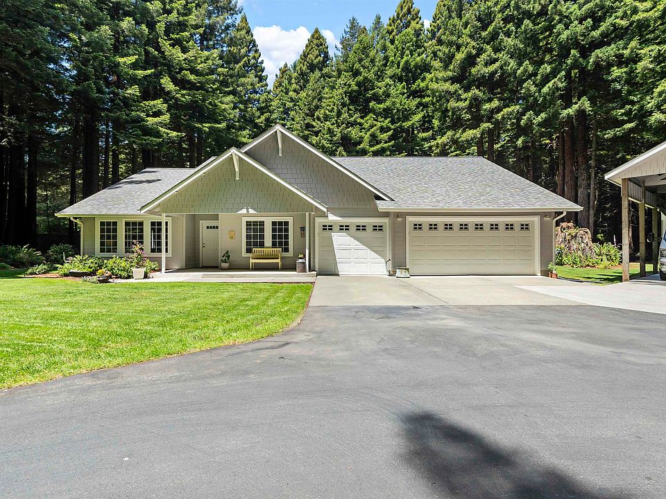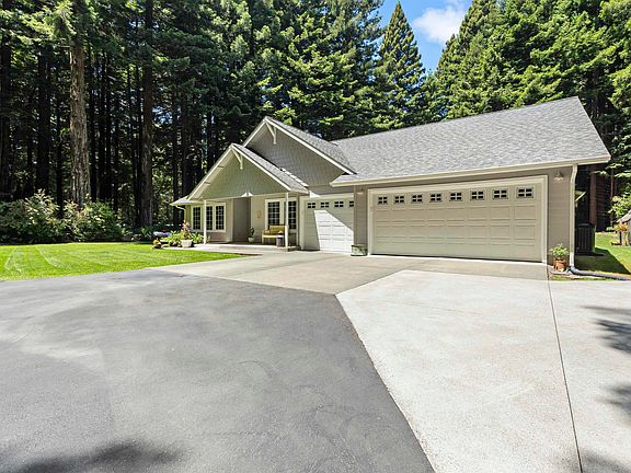 Welcome to your secluded sanctuary nestled amidst the majestic redwoods! This stunning 4-bedroom, 2-bathroom home spans across 2081 square feet on a generous 2-acre parcel, offering both privacy and space to breathe. As you step onto the property, you're greeted by meticulously landscaped grounds, surrounded by the tranquil beauty of towering redwoods. The exterior boasts a 2-car garage, perfect for storing vehicles or outdoor gear, along with an RV awning for all your adventurous excursions. Inside, you'll find a haven of comfort and convenience. Vaulted ceilings accentuate the spaciousness of the home, while large windows invite natural light to cascade in, creating an inviting atmosphere. The primary bedroom features a luxurious walk-in closet, providing ample storage space. Additional highlights include a workshop and greenhouse, perfect for pursuing hobbies or cultivating your green thumb. Plus, with energy-efficient heating and air conditioning, along with a built-in air purifying system installed just 7 months ago, you'll enjoy year-round comfort and peace of mind. The water heater, just 4 years old, provides reliable hot water when you need it most. Plus, the well was serviced just 1.5 years ago, offering assurance of water quality and reliability. Located in a highly desirable area, this property offers the best of both worlds - tranquility and convenience. Don't miss your chance to own this slice of paradise - schedule your private showing today by texting or calling Mandy 707-951-6275.