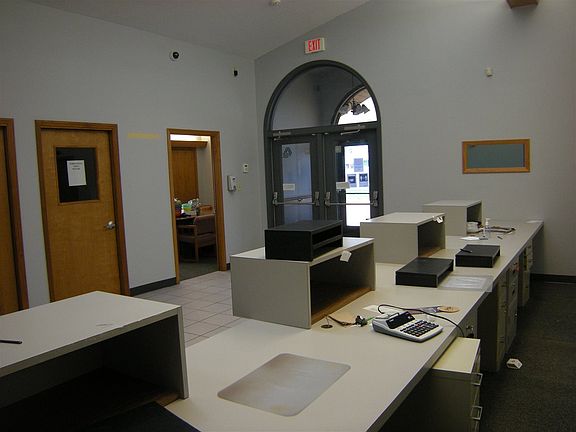 Brick office building offers many options with dramatic ceilings, skylights, and drive-up window.