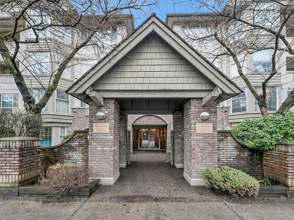 Welcome to Bloomfield Gardens is this Spacious 1,010 SqFt 2 Bed 2 Bath Open Concept Ground level unit which Boasts a Massive Patio Space for Summer Time Enjoyment. Freshly Updated with New Stove, New Dishwasher, & Paint. Live Comfortably with Bright Bay Windows, Cozy Gas Fireplace, In-suite Laundry & 2 Secured Underground Parking. Just Minutes to VanDusen Botanical Gardens, Oakridge Center, Canada Line, Children's Hospital and easy access to Richmond, Downtown, UBC. Bonus: Maintenance Fee includes Hot Water, Heat, Amenity games room with Full Kitchen & Billiards. School Catchments~ Dr. Annie B. Jamieson Elementary & Eric Hamber Secondary. Pets and rentals allowed. Don't hesitate or you may miss out on this Gem.