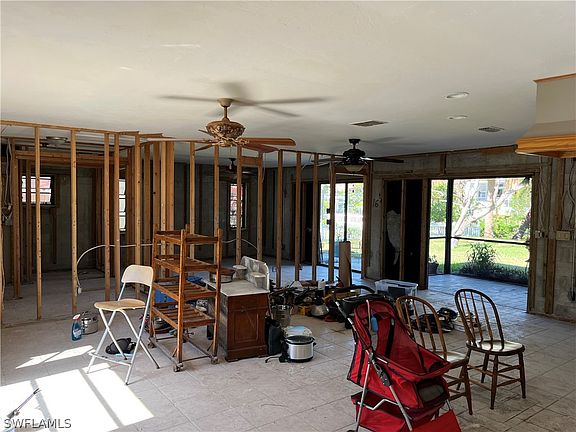 OPPORTUNITY AWAITS! This three bedroom, two bathroom, 2 car garage home is set on a Gulf Access canal lot with no bridges to navigate and is within minutes of Mullock Creek, the back bay waters, Estero Bay and short distance to Lover's Key and the Gulf of Mexico. Located in the non-gated, non-HOA community of Ten Mile Anchorage, a Boater's, Nature Lover's and Fisherman's ideal location. Due to flooding during Hurricane Ian, the interior of the home has been taken down to the concrete walls and wood framework and is being sold As-Is. The roof was replaced in 2020. There is a fishing dock on the canal, with room to expand the dock and add a boat lift. Plenty of room for a pool and pool deck. Convenient location west of US41 and close to RSW Airport, casual and fine dining venues, shopping malls and the beaches.