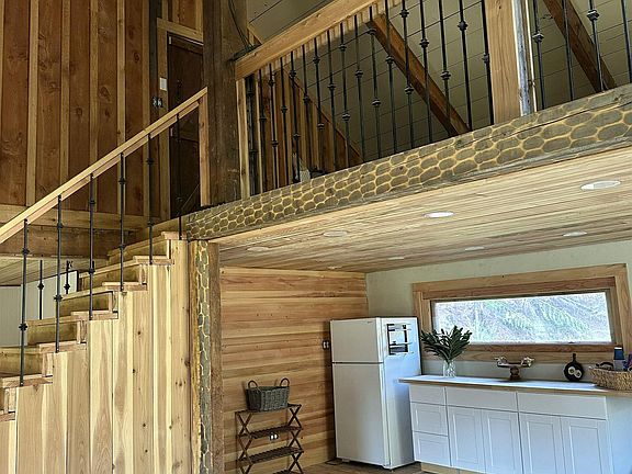 RIVER FRONTAGE-499 Feet of Little Salmon River Frontage! This charming cabin offers a truly unique setting along the pristine banks of the Little Salmon River. The home is partially renovated and ready for your personal finishing touches. The main level features an open-concept living, dining, and kitchen area, along with a full bathroom and an office space. Upstairs, you'll find a spacious loft and a generously sized bedroom. An additional 1.5 bathrooms and a laundry room are located at the rear of the home with separate exterior access—perfect for guests or flexible use. Step outside to enjoy the expansive deck, complete with an outdoor kitchen and breathtaking river views. Whether you're looking for a weekend getaway or a year-round residence, this property offers peace, privacy, and unlimited potential. There is also a small trailers with deck located on the property.