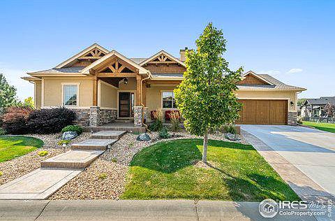 This elegant custom ranch style home in a gated golf course community will not disappoint! This 5 bedroom home features a large kitchen with knotty alder cabinets, huge entertaining areas in the basement and backyard and an oversized 4 car garage with over 1,000 square feet and epoxy floors! The master suite has access to the patio and hot tub area (hot tub negotiable). Located in SW Loveland, it's a short distance to Boedecker Lake, Mariana Butte Golf Course, Devil's Backbone & Estes Park.