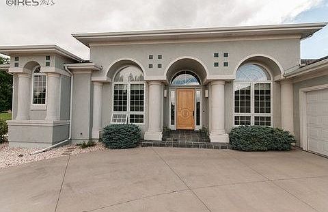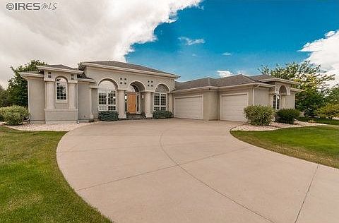 Magnificent Mediterranean home in desirable Highland Hills subdivision. Exquisite architectural details throughout! Huge spacious rooms grace this wonderful home. Kitchen featuring maple cabinets, granite countertops, and tile flooring. All kitchen appliances are included. Beautiful outdoor views from every room. Amazing views of Long's Peak and the front range out your back door. Wonderful spacious backyard with fountain. All this on located on nearly an acre.