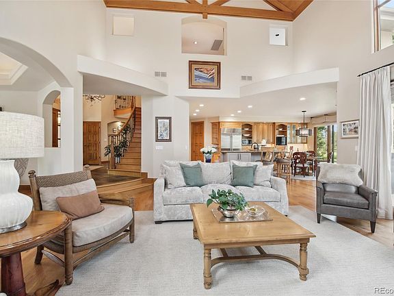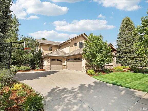 Stunning custom home backing to green belt in Grant Ranch. The entryway features a custom covered porch and beautiful solid double doors. When you enter the home, you are met with a curved wooden staircase with wrought iron balusters. Gourmet kitchen with large island and bar seating,  6 burner, dual fuel double oven/Range, granite countertops, Sub Zero and Nana doors to the patio. Main floor primary retreat with volume ceiling, plantation shutters and French doors to the Patio. The luxurious primary bath has a free-standing tub, frameless shower, auto blinds, plantation shutters and custom closet. Formal dining room with wide plank oak hardwood floors, coffered ceiling with Tray lighting, French doors to Front courtyard. Main floor study with built in cabinets, shutters and crown molding. 2 story great room with open beam, upper windows, 2 story fireplace with built ins and updated lights. The finished basement has a media room with newer carpet and paint, shiplap, flat screen and daylight windows. Flex space that is perfect for a game room, hobby room or exercise room. Rec room with wet bar and granite counters. Basement also has tons of storage and a large steam shower. You will love the outdoor oasis with covered patio and just refinished IPE decking, fire pit and French planter. The upper deck overlooks the greenbelt and lakes in Bow Mar.