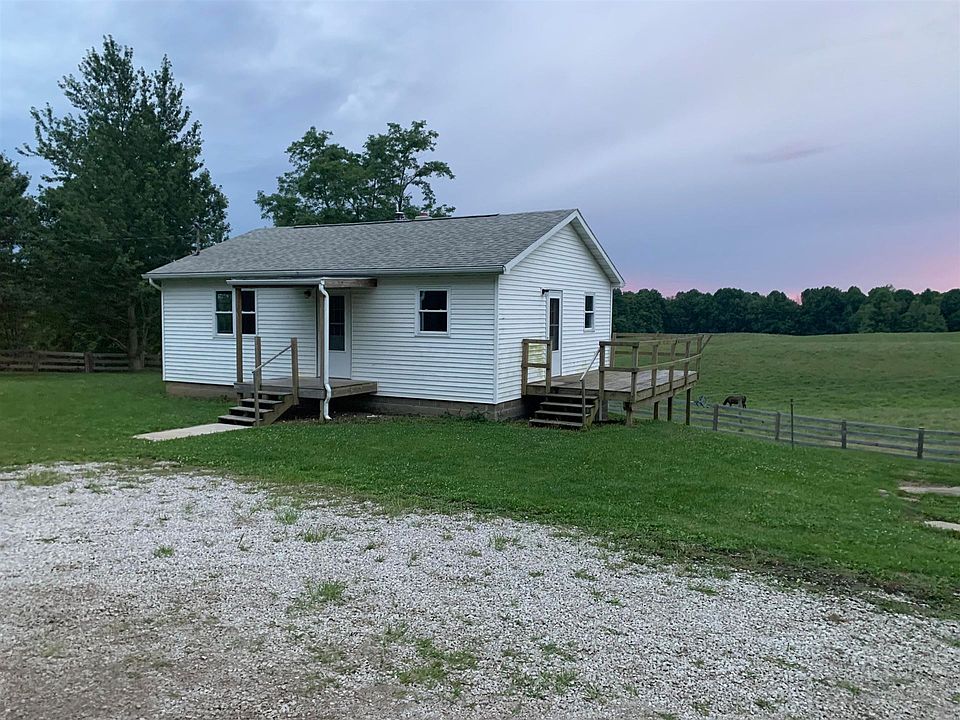 Come check out the beautiful views from the side deck overlooking this 5 acre property. Quaint ranch home featuring 1 bedroom, 1 bathroom and full basement. Home could easily be converted back to a 2 bedroom home. 50 x 24 barn and additional 50 x 14 lean-to with fenced pastures. Home is currently an amish home. Electric is still in the home and runs the well pump, all breakers have been turned off. Wood Burning stove in the basement is used to heat the home. There is no furnace, but some existing duct work is present. Home is being sold as-is with no repairs made by the seller. Conventional or cash buyers only. Seller has requested home to be marketed for 5 days with highest and best offers submitted to the listing agent by Sunday 8-23-2020 at 9pm.