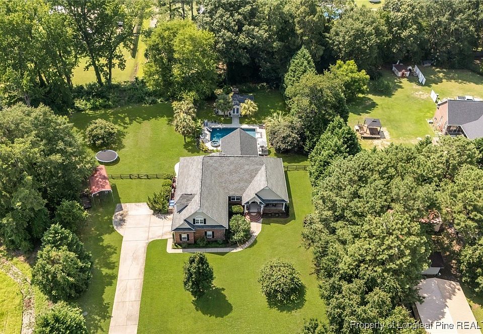 Enjoy outdoor living on the beautifully wood-lined back patio overlooking the sparkling in-ground heated pool and spa that overflows into pool, with a paved surrounding. A separate pool house completes this resort like property with its own bathroom and living area/games room with a fireplace. Beautiful landscaped grounds complete this exceptional property. Crawl space has a complete Aquastop Air system that was installed in December 2024. All of this on your own private acreage within minutes of local shopping, dining and in the Jack Britt School District. Don't miss the opportunity to see this property make your appointment now.